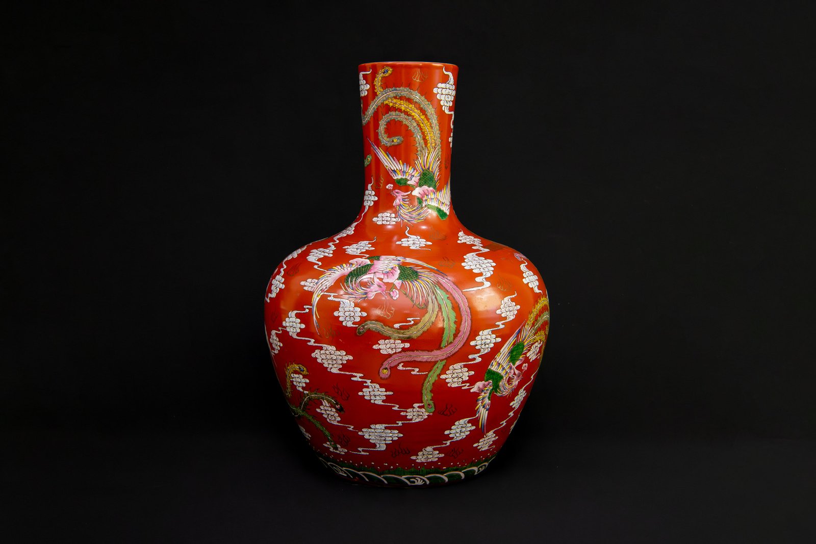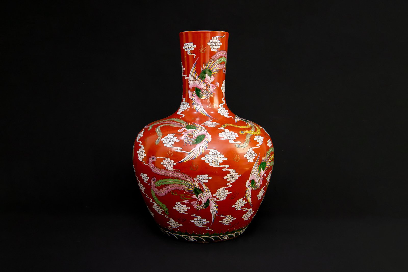 Chinese Red-Glazed Vase with Nine Phoenixes