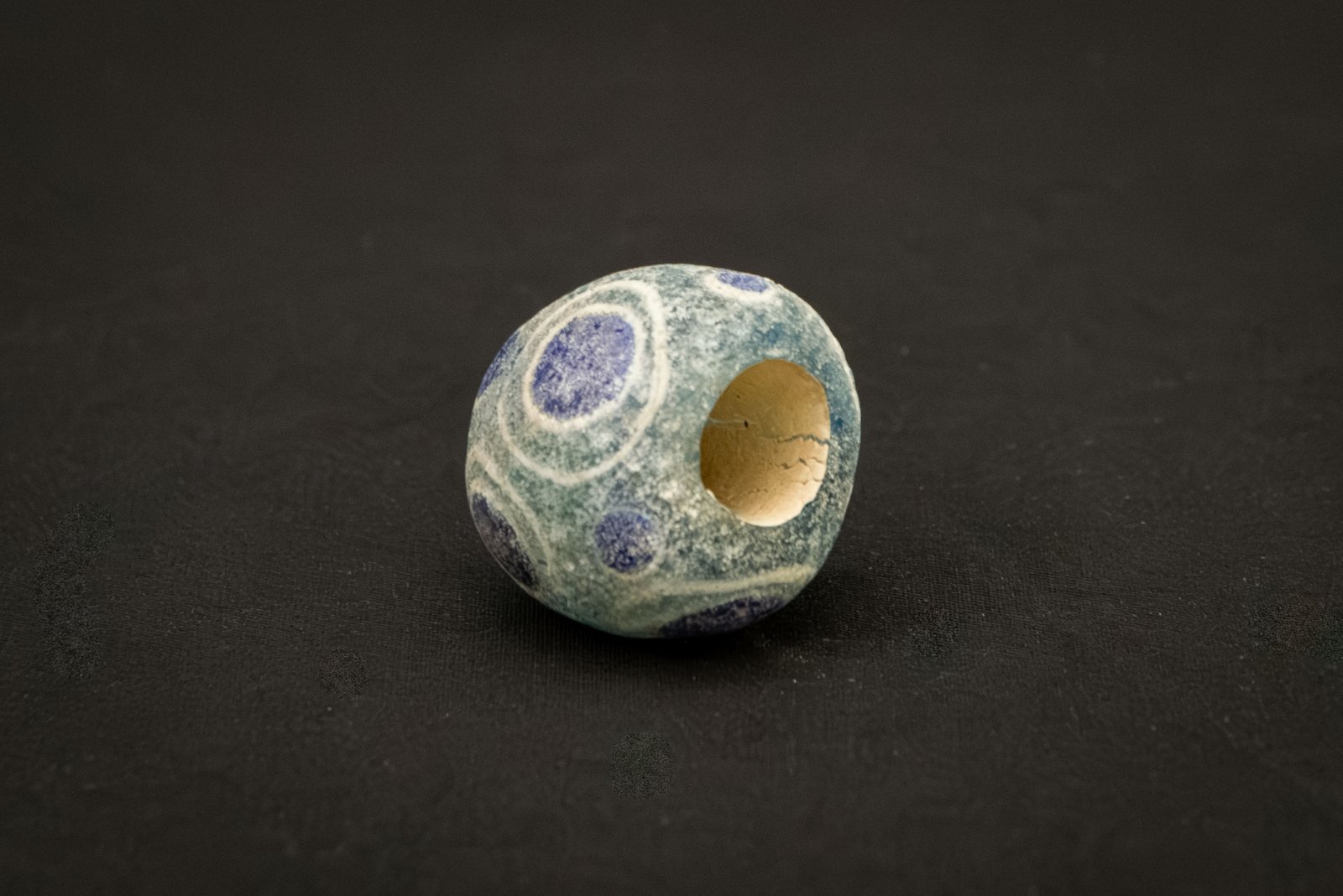 These beads were often used as decorative items, amulets, or traded luxury goods. The concentric circle design was believed to ward off evil and symbolized protection.